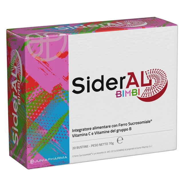 Ogni bustina di Sideral Bimbi contiene ferro sucrosomiale, vitamina C e vitamine del gruppo B, dosati secondo i parametri dei LARN. Il ferro, in particolare, è altamente assimilabile e ben tollerato, evitando disturbi gastrici.