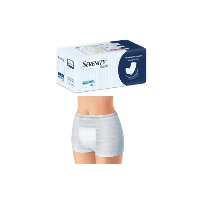 Pannolone rettangolare da indossare in abbinamento alle apposite mutande elasticizzate Serenity, lavabili e riutilizzabili, che permettono al pannolone di aderire al corpo e rimanere in posizione, per offrirti la protezione di cui hai bisogno. Il pannolone rettangolare con barriera Serenity è rivestito di morbido tessuto non tessuto ipoallergenico che cattura rapidamente e in maniera duratura i liquidi evitando così che vengano a contatto con la pelle. Per una sensazione di asciutto e freschezza che dura a lungo.