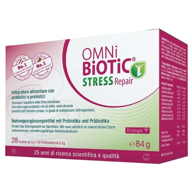 OMNi-BiOTiC® STRESS Repair è un integratore alimentare formulato con una combinazione esclusiva di probiotici e prebiotici, progettato per sostenere l'equilibrio della flora intestinale e migliorare il benessere digestivo.