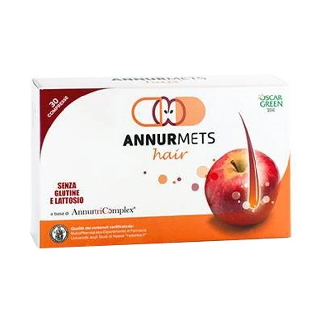 Scopri Annurmets Hair, l'integratore alimentare progettato specificamente per il mantenimento della salute dei tuoi capelli. Grazie alla sua formula avanzata a base di AnnutriComplex, estratto di melannurca campana IGP, selenio e biotina, offre un sostegno essenziale per capelli normali e per la normale pigmentazione.