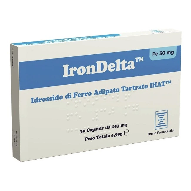 Dettagli IronDelta - Integratore di Ferro Adipato Tartrato IHAT - 30 Capsule