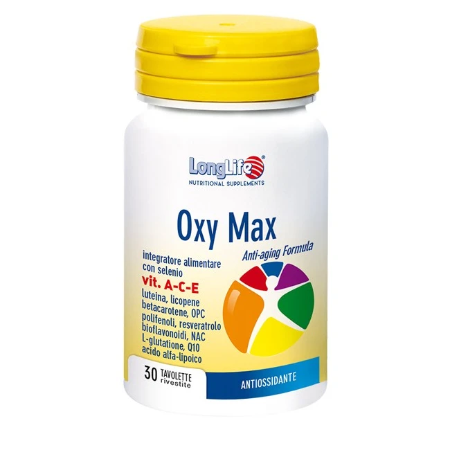 Integratore alimentare con selenio e vitamine A,C,E con luteina, licopene, beta-carotene, polifenoli, OPC, acido alfa- lipoico e coenzima Q10, ad azione antiossidante e protettiva su ogni cellula. Adatto a vegetariani e vegani.