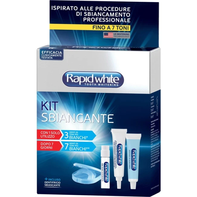 Il Kit Sbiancante Rapid White non utilizza perossido di idrogeno. Sbianca solo i denti naturali.