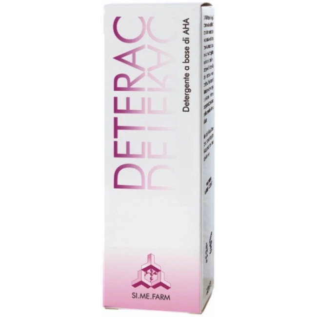 Gli Alfa-Idrossiacidi o più comunemente "acidi della frutta" sono utilizzati in cosmetica per la loro spiccata azione esfoliante e cheratolitica. Deterac, in base a ciò e a un mix di principi attivi sebonormalizzanti, è il detergente di riferimento della cute seborroica, acneica e comedonica, L'incisiva azione di Deterac è nel contempo mitigata da sostanze lenitive e decongestionanti, che assicurano emolliena e massima tolleranza sulla cute.