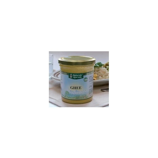 Il Ghee (o burro chiarificato) è un'antichissima ricetta ayurvedica derivata dal burro. Si tratta essenzialmente di burro dal quale è stata tolta l'acqua e la componente proteica in esso contenute.La cucina ayurvedica usa il ghee al posto del burro e dell'olio per cucinare, friggere e arrostire, perché si può scaldare e cuocere senza che diminuiscano o si perdano le sue proprietà.