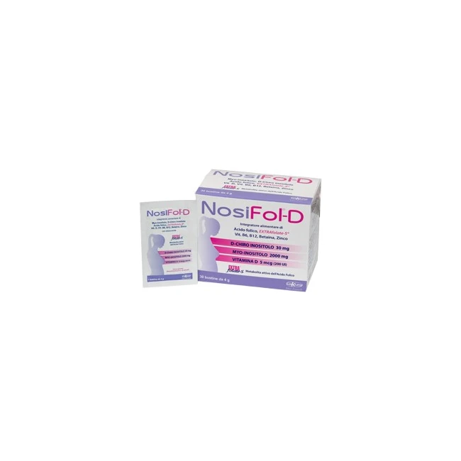 Contribuisce al normale assorbimento ed utilizzo di calcio e fosforo ed interviene nel processo di divisione cellulare. Nosifol-D contiene 5 mcg di vitamina D3, pari al 100% della dose giornaliera raccomandata (VNR).