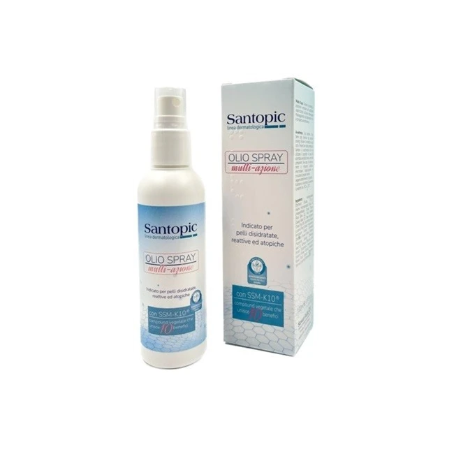 Olio spray multi-azione: indicato in caso di pelle disidratata, sensibilizzata ed atopica. Protegge, nutre e ripristina il film lipidico cutaneo.