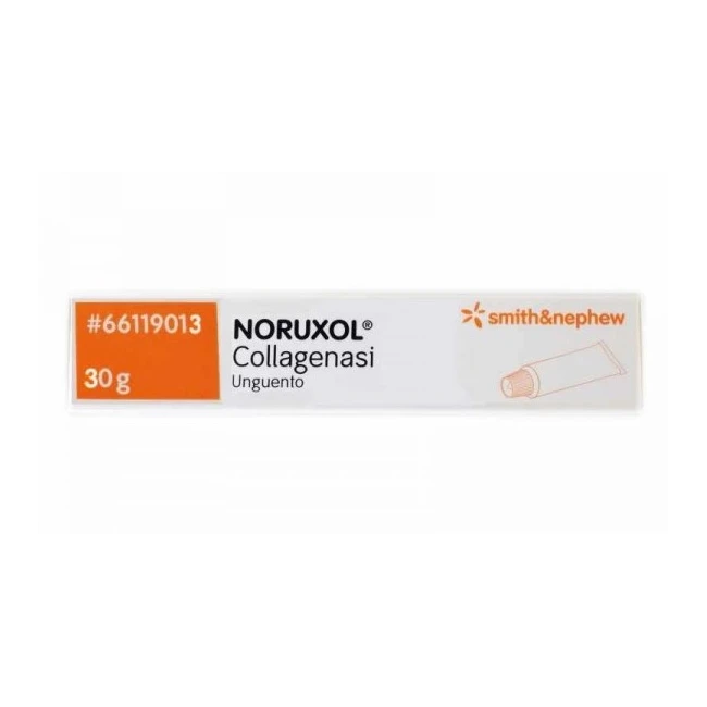 Noruxol Unguento è un medicinale a base di Clostridiopeptidasi A (collagenasi) e proteasi, indicato per il trattamento delle ferite cutanee superficiali e profonde come ulcere da decubito, ulcere diabetiche, ulcere venose e ustioni che favorisce la detersione enzimatica rimuovendo croste ed escare, accelerando così i processi di cicatrizzazione e guarigione.