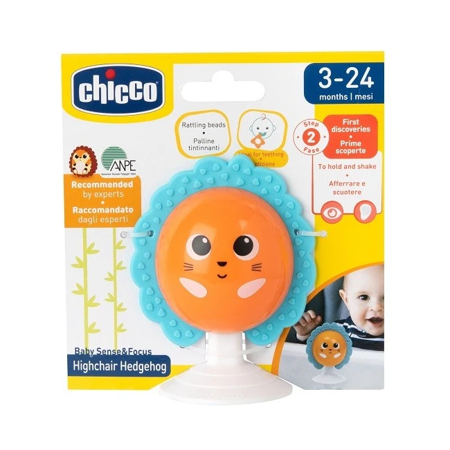 Il Gioco da seggiolone Riccio della linea Baby Sense&Focus di Chicco è pensato per accompagnare i primi mesi di crescita del neonato con un'esperienza di gioco sensoriale sicura, colorata e stimolante e, progettato per bambini dai 6 mesi in su, combina funzionalità e divertimento in un design adorabile e rassicurante.
