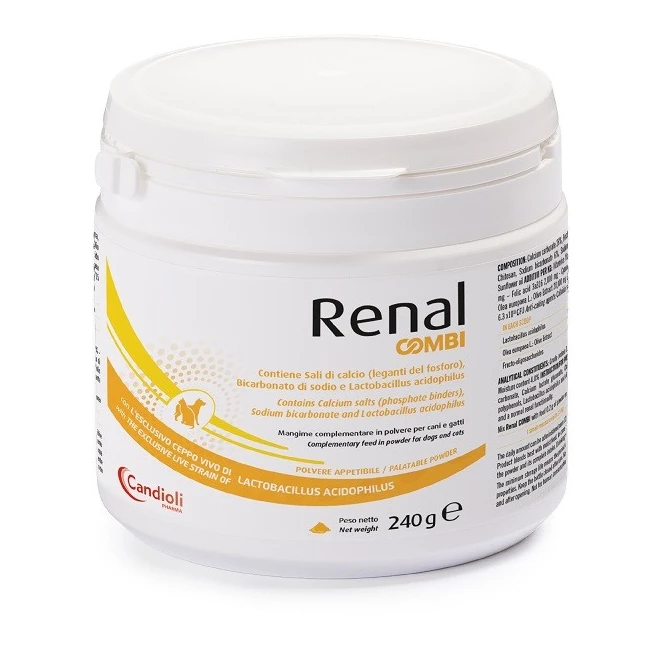 DescrizionePer cani e gatti adulti. Renal COMBI apporta carbonato di calcio, gluconato di lattato di calcio, chitosano, bicarbonato di sodio.