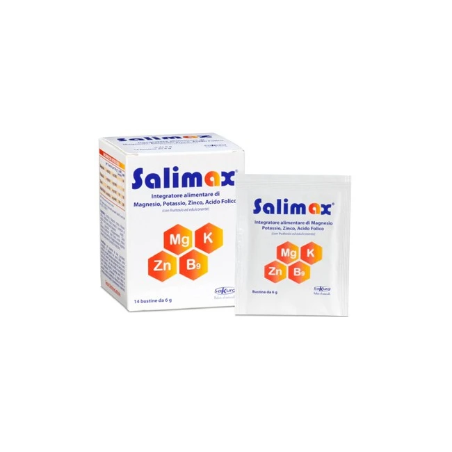 Salimax aiuta a contrastare situazioni di stanchezza, affaticamento e al mantenimento di normali funzioni psicofisiche grazie alla presenza di magnesio e acido folico.
