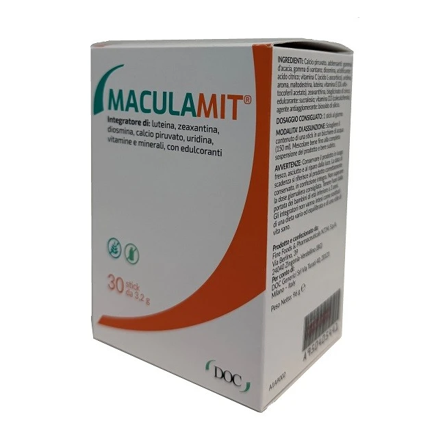 Integratore alimentare di calcio piruvato, uridina, luteina, zeaxantina, vitamine e minerali; con edulcorante Luteina e Zeaxantina sono pigmenti maculari che appartengono alla famiglia dei carotenoidi e si accumulano a livello della macula lutea della retina.