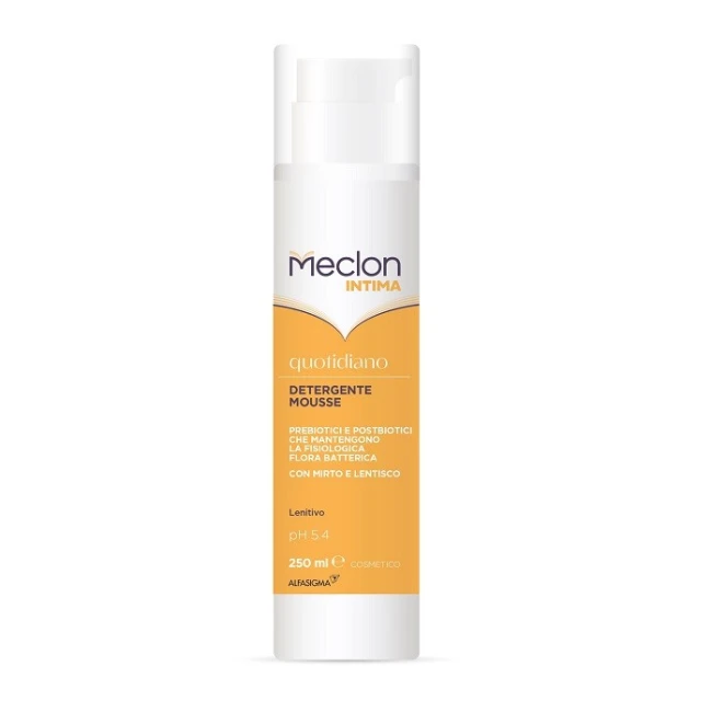 Meclon Intima Quotidiano è un detergente intimo in mousse studiato per l'igiene quotidiana delle mucose genitali esterne la cui formula innovativa con prebiotici e postbiotici aiuta a preservare la naturale flora batterica vulvare e a mantenere l'idratazione fisiologica dei tessuti.