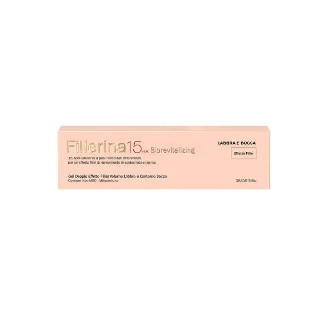 Fillerina 15HA Biorevitalizing Labbra e Bocca Grado 5 è un trattamento dermo-cosmetico in gel con doppia azione filler e biorivitalizzante, studiato per migliorare l’aspetto delle labbra e ridefinire il contorno della bocca che, formulato con una combinazione avanzata di 15 acidi ialuronici a diverso peso molecolare per un effetto riempitivo multilivello, è potenziato da due precursori dell'acido ialuronico (acetyl glucosamine e glucuronic acid) che stimolano la produzione endogena.