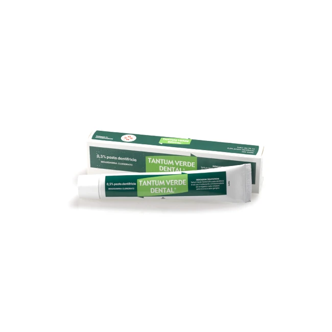 Tantum Verde Dental 0,5% è una pasta dentifricia a base di benzidamina cloridrato, un principio attivo noto per le sue proprietà antinfiammatorie, analgesiche e anestetiche che aiuta a ridurre rapidamente i sintomi dolorosi e infiammatori, favorendo una buona igiene orale quotidiana.
