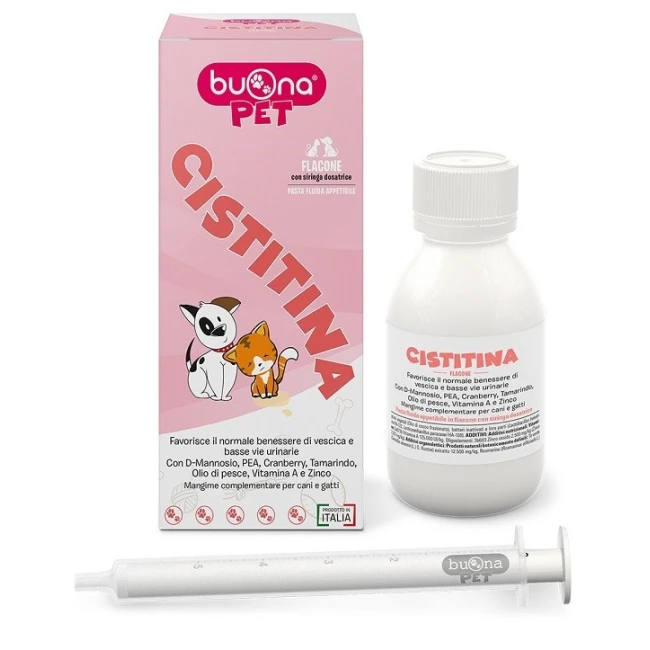 Agitare energicamente il flacone prima dell’uso, per almeno 30 secondi. All’interno del flacone sono presenti 2 sfere in acciaio che contribuiscono a miscelare uniformemente i componenti di CISTITINA. Per prelevare il prodotto, svitare il tappo ed inserire la siringa nell’apposito adattatore. Mantenere sempre l’adattatore sul tappo durante il prelievo per impedirne la fuoriuscita accidentale delle sfere e l’eventuale ingestione da parte dell’animale. Capovolgere il flacone estrarre la razione giornaliera indicata in tabella. Riposizionare il flacone in verticale, rimuovere la siringa e richiudere il flacone. Somministrare il prodotto direttamente in bocca all’animale o disperso nel cibo gradito. Completare la razione giornaliera con l’alimento abituale. Lasciare sempre acqua fresca a disposizione.