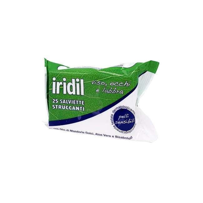 Le salviette struccanti Iridil sono state studiate per rimuovere delicatamente il trucco da viso, occhi, labbra e collo rispettando il pH delle pelli più delicate. Con olio di mandorle dolci, aloe vera e bisabololo, noti per le loro proprietà addolcenti, rinfrescanti, lenitive, emollienti ed idratanti.