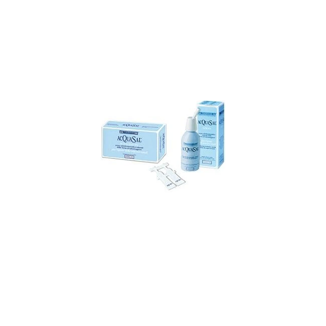 ACQUASALper l'igiene delle fosse nasali; soluzione isotonica sterile in flaconcini monodose. Ideale per la pulizia quotidiana del nasino dei neonati e dei bambini; per favorire la fluidificazione e la rimozione meccanica del muco durante il raffreddore; per idratare le mucose nasali in situazioni ambientali che possono provocare secchezza; negli adulti per il lavaggio e la corretta igiene delle fosse nasali e mascellari e dei seni paranasali.