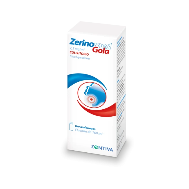 Gli effetti indesiderati possono essere minimizzati con l'uso della più bassa dose efficace per la più breve durata possibile di trattamento che occorre per controllare i sintomi (vedere paragrafo 4.4). ZERINOMED GOLA Collutorio Posologia Adulti: 2-3 sciacqui o gargarismi al giorno con 10 ml (1 misurino) di collutorio. Popolazione pediatrica Bambini di età superiore a 12 anni: come per gli adulti. Bambini di età inferiore a 12 anni: non somministrare ai bambini di età inferiore a 12 anni (vedere paragrafo 4.3). Popolazioni speciali Anziani: i dati clinici al momento disponibili sono limitati, pertanto non può essere fatta alcuna raccomandazione riguardante la posologia. Gli anziani hanno un maggior rischio di gravi conseguenze in caso di reazioni avverse (vedere paragrafo 4.4). Pazienti con insufficienza epatica: non è necessaria una riduzione del dosaggio in pazienti con insufficienza epatica da lieve a moderata. Flurbiprofene è controindicato in pazienti con insufficienza epatica grave (vedere paragrafo 4.3). Pazienti con insufficienza renale: non è necessaria una riduzione del dosaggio in pazienti con insufficienza renale da lieve a moderata. Flurbiprofene è controindicato in pazienti con insufficienza renale grave (vedere paragrafo 4.3). Modo di somministrazione Per uso orofaringeo. Sciacquare o mantenere in bocca durante i gargarismi fino a 1 minuto. Non ingerire. Il collutorio può essere usato puro o diluito in mezzo bicchiere d’acqua. ZERINOMED GOLA Spray per mucosa orale Posologia Adulti: applicare una dose (2 spruzzi) 3 volte al giorno indirizzati direttamente sulla parte interessata. Ogni spruzzo eroga 0,2 ml di soluzione, equivalenti a 0,5 mg di principio attivo. Popolazione pediatrica Bambini di età superiore a 12 anni: come per gli adulti. Bambini di età inferiore a 12 anni: non somministrare ai bambini di età inferiore a 12 anni (vedere paragrafo 4.3). Popolazioni speciali Anziani: i dati clinici al momento disponibili sono limitati, pertanto non può essere fatta alcuna raccomandazione riguardante la posologia. Gli anziani hanno un maggior rischio di gravi conseguenze in caso di reazioni avverse (vedere paragrafo 4.4). Pazienti con insufficienza epatica: non è necessaria una riduzione del dosaggio in pazienti con insufficienza epatica da lieve a moderata. Flurbiprofene è controindicato in pazienti con insufficienza epatica grave (vedere paragrafo 4.3). Pazienti con insufficienza renale: non è necessaria una riduzione del dosaggio in pazienti con insufficienza renale da lieve a moderata. Flurbiprofene è controindicato in pazienti con insufficienza renale grave (vedere paragrafo 4.3). Modo di somministrazione Per uso orofaringeo. Indirizzare l’erogatore verso la parte posteriore della gola e spruzzare sulla parte interessata.