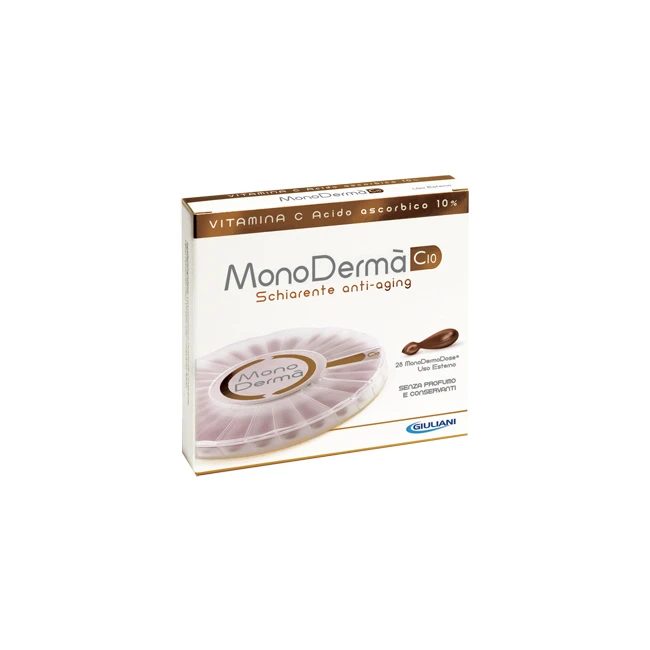 Prodotto dermatologico contiene vitamina C pura alla concentrazione del 10%. La vitamina C è un fattore nutritivo indispensabile che, non essendo sintetizzato dall’organismo umano, deve essere somministrato dall’esterno. L’applicazione topica di vitamina C è la via elettiva per compensare eventuali situazioni di deficit a livello cutaneo. L’acido L-ascorbico è la forma di vitamina C utilizzata dall’organismo, i cui benefici effetti per la pelle sono stati ampiamente descritti. Tra questi vanno segnalati la stimolazione della sintesi del collagene, la fotoprotezione da UVA e UVB, l’azione schiarente sulle macchie da iperpigmentazione e le proprietà antinfiammatorie. Per queste sue caratteristiche, la vitamina C (Acido L-Ascorbico) è indicata nel trattamento dell’invecchiamento cutaneo, delle discromie cutanee (anche come prevenzione di quelle post-laser) e come coadiuvante nel trattamento di alcune dermatosi a base infiammatoria. La monodermodose consente di avere una formula essenziale, sicura e ben tollerata dalla pelle, grazie alla totale assenza di conservanti e profumo. Utile nel trattamento delle discromie cutanee, delle macchie da iper-pigmentazione e del foto-danneggiamento. Ogni MonoDermaDose, essendo totalmente biodegradabile, può essere smaltita dopo l'uso con i rifiuti umidi o direttamente nell'acqua di scarico.