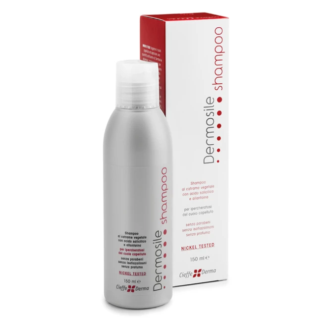 Dermosile Shampoo è un trattamento dermocosmetico sviluppato per la detersione del cuoio capelluto affetto da ipercheratosi e da eccessiva desquamazione la cui formula contiene catrame vegetale, noto per le proprietà cheratoplastiche, acido salicilico, che favorisce il rinnovamento cutaneo, e sarcosina, che contribuisce a riequilibrare la flora cutanea grazie al suo effetto probiotico.