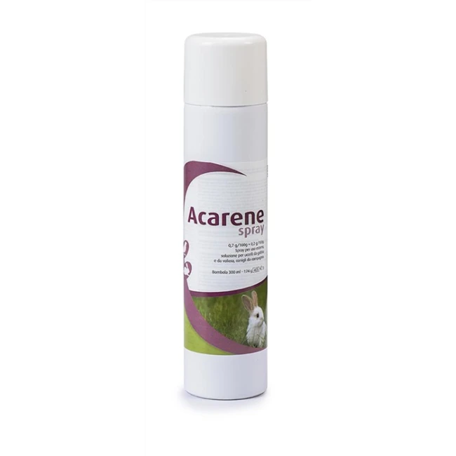 Agitare la bombola prima dell'uso, quindi spruzzare sui soggetti da trattare da una distanza di 20 cm, evitando un raffreddamento eccessivo dovuto alla rapida evaporazione del propellente con conseguente rischio di affezioni respiratorie, operando con brevi spruzzi (circa g 0,3 g di prodotto) per ogni uccellino (peso 15/20 grammi) e di 15 ml (3 erogazioni da 5 secondi) per ogni coniglio (peso medio 1 kg). Evitare di spruzzare il prodotto su occhi e becco degli uccelli o sul muso dei conigli. Ripetere il trattamento dopo 5 giorni. Nei casi di acariosi deplumante, si consiglia di bruciare le penne cadute. Non superare le dosi consigliate. La confezione da 150 ml di prodotto e' destinata a trattare un numero massimo di 5 conigli o 144 uccellini malati.