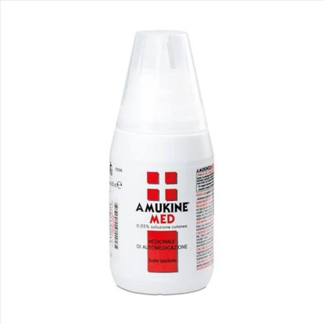 Amukine Med 0,05% è una soluzione cutanea disinfettante pronta all’uso a base di sodio ipoclorito, indicata per la disinfezione e pulizia della cute lesa, comprese ferite, piaghe, ustioni e dei genitali esterni la cui formula dermatologicamente testata garantisce un’efficace azione antimicrobica riducendo il rischio di infezione, senza necessità di diluizione.