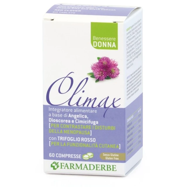 Integratore alimentare a base di angelica, trifoglio rosso, dioscorea, agnocasto e cimicifuga, estratti vegetali utili per contrastare i disturbi della menopausa.Non contiene glutine.