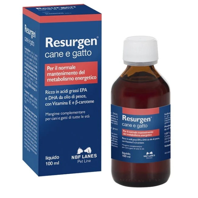 Resurgen liquido è un mangime complementare per cani e gatti utile per favorire il normale mantenimento del metabolismo energetico.