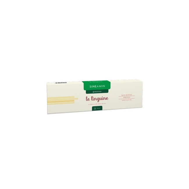 Pasta aproteica e senza glutine. Per il trattamento dietoterapico di soggetti con insufficienza renale cronica e aminoacidopatie metaboliche. La pasta Sineamin è inoltre indicata nelle diete aproteiche, prive di glutine ed a basso contenuto di sodio, potassio e fosforo.