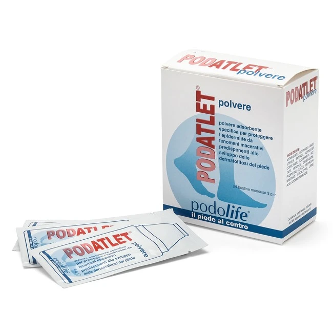 Polvere adsorbente specifica per proteggere l’epidermide da fenomeni macerativi predisponenti allo sviluppo delle dermatofitosi del piede.