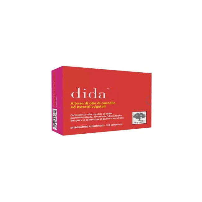 Integratore alimentare a base di un complesso di estratti vegetali, utile a contribuire alla regolare motilità gastrointestinale, favorendone l'eliminazione dei gas e a contrastare il gonfiore intestinale. La formula di Dida è composta da estratti vegetali molto noti e testati. A base di olio di cannella ed altre piante che svolgono le medesime attività fisiologiche. Tutti gli ingredienti sono trattati singolarmente, standardizzati e continuamente sottoposti a controlli in laboratori europei.