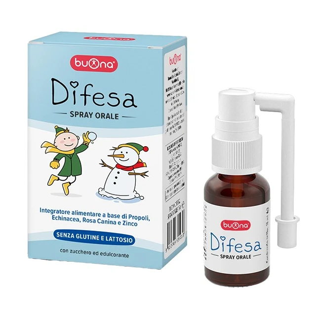 Spray orale Buona Difesa spray orale è un integratore a base di estratti naturali: Propoli, Echinacea, Rosa Canina; è arricchita con Zinco.