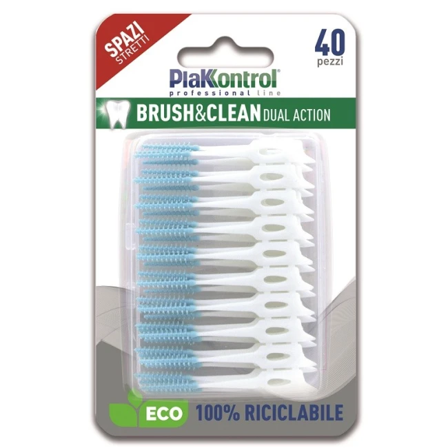 - è sicuro da utilizzare: l’anima realizzata in materiale plastico estremamente flessibile e le setole morbide come la gomma, rendono impossibile ferire la gengiva o danneggiare lo smalto dei denti. Grazie a queste caratteristiche Plakkontrol Brush & Clean è inoltre lo strumento ideale per sostituire l’utilizzo dello stuzzicadenti, un’abitudine del dopo pasto ancora assai radicata ma potenzialmente pericolosa;