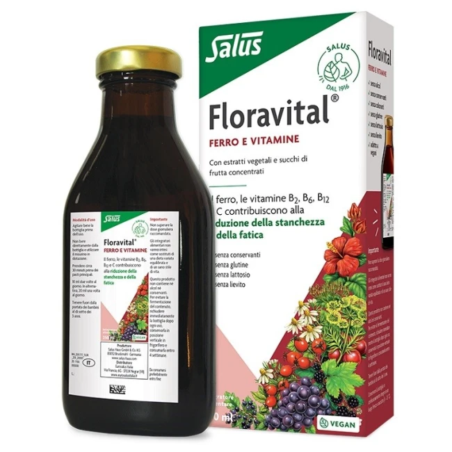 Floravital è facile da assumere e aiuta a mantenere l’equilibrio di ferro e vitamine B1, B2, B6, B12 e C. I nutrienti contenuti in Floravital sono assorbiti rapidamente dal sistema digestivo perché sono già disciolti.
