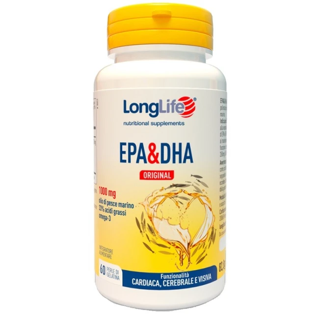 EPA e DHA sono acidi grassi omega-3 che contribuiscono alla normale funzione cardiaca, l'effetto benefico si ottiene con 250 mg di EPA e DHA (1 perla al giorno). Il DHA, inoltre, contribuisce al mantenimento della capacità visiva e alla normale funzione cerebrale, l'effetto benefico si ottiene con 250 mg di DHA (3 perle al giorno).