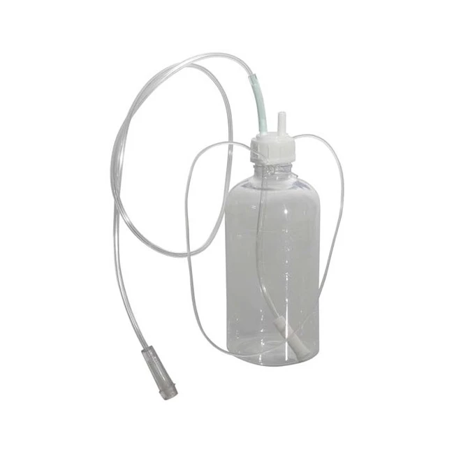 Umidificatore monouso per ossigenoterapia con filtro silenziatore. Prodotto senza lattice.
