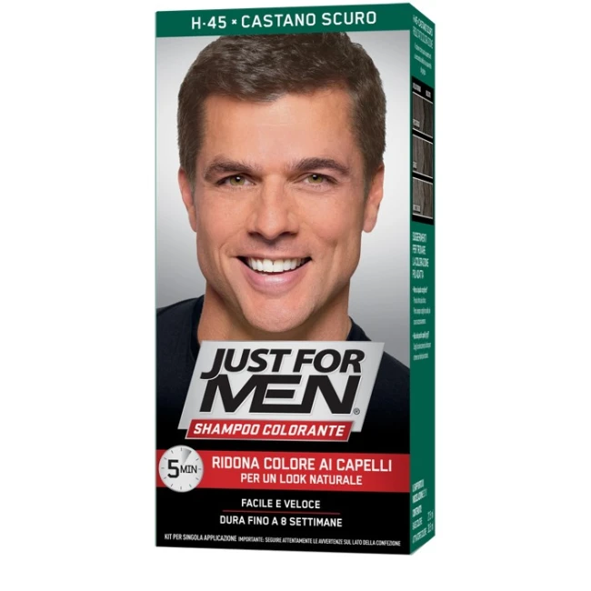 Combe Just For Men Shampoo Colorante H45 Castano Scuro Attivatore Chiaro 38,5 Ml + Base Colore 27,5 Ml