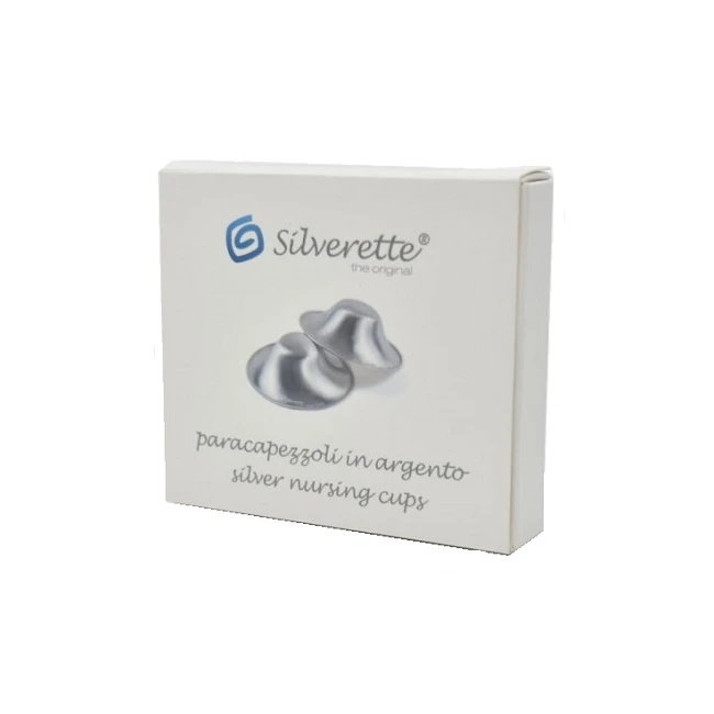 Coppette realizzate in argento 925 per l'efficace protezione del capezzolo, in grado di prevenire le ragadi durante il periodo di allattamento. Brevettata con la forma con apice arrotondato per rispettare la conformazione del capezzolo. Si consiglia l’uso preventivo.