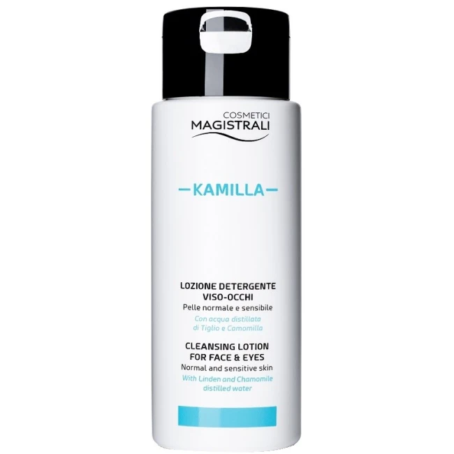 Lozione detergente viso-occhi, senza risciacquo. Lozione formulata allo stesso pH e concentrazione salina del liquido lacrimale. Senza aggiunta di profumazioni, Kamilla coniuga l'azione lenitiva e calmante dell'acqua distillata e dell'olio di camomilla con l'azione rinfrescante e distensiva dell'acqua distillata di tiglio. Per pelle normale e sensibile.