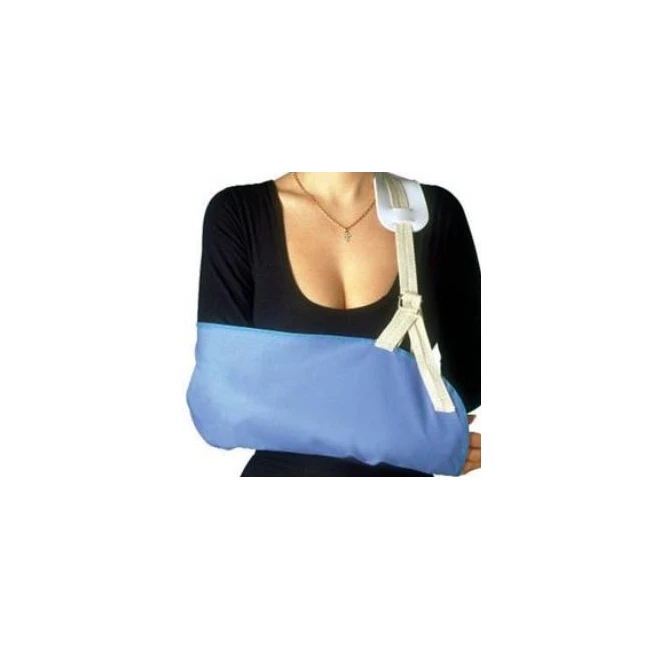 Dispositivo utilizzato in caso di slogature, traumi ed ingessature del braccio consente l’immobilizzo in posizione corretta dell’arto superiore. Regolabile con bretella e fibbia.