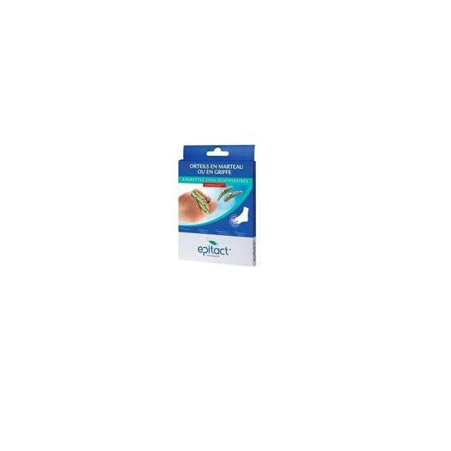 Dispositivo Medico CE.Permettono di allungare le dita deformate (a martello, ad artiglio) e limitano così la formazione di calli dorsali e ai polpastrelli. Attraverso la loro forma si adattano perfettamente allo spazio situato sotto le dita del piede. Il morbido elastico da passare attorno al terzo dito permette un buon mantenimento delle barrette in posizione.