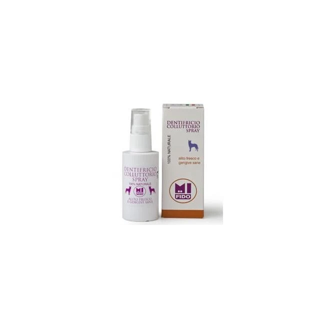 Dentifricio-collutorio spray 100% naturale. Dona un alito fresco e gengive sane per cani. A base di puri oli essenziali ed estratto di Calendula bio, è in grado di prevenire la formazione della placca e, di conseguenza, l'alitosi. Il puro olio essenziale di Salvia, insieme all'estratto di Calendula bio, agisce sulle gengive, proteggendole e tonificandole. Il dentifricio collutorio, grazie allo spray, può raggiungere anche gli angoli più nascosti del cavo orale, garantendo un'azione igienica completa.Componenti