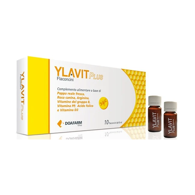 YLAVIT PLUS è un complemento alimentare per bambini dai 3 anni e per adulti a base di Pappa reale fresca, Arginina, Rosa canina, Vitamine del gruppo B, Vitamina PP, Acido folico e Vitamina D3, utile per colmare le carenze nutrizionali o gli aumentati fabbisogni di tali nutrienti. Senza glutine e senza lattosio.
