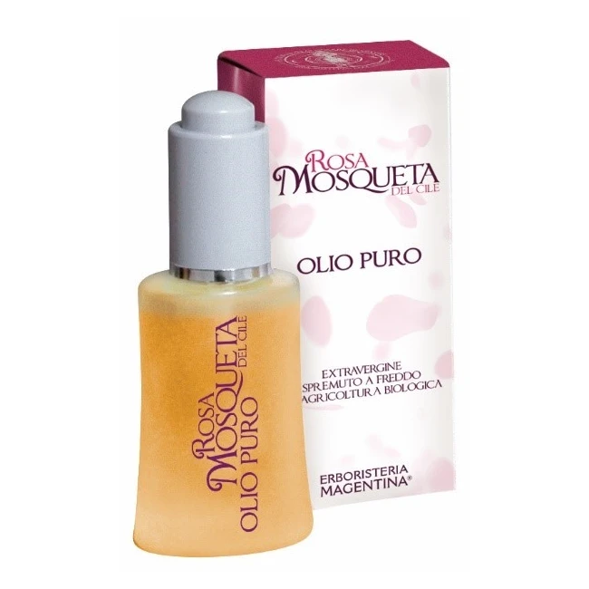 Olio extravergine di Rosa Mosqueta ottenuto per spremitura a freddo, non raffinato. Stimola i processi biorigenerativi della cute contrastando rughe, macchie, cicatrici chirurgiche o da acne e smagliature. Di rapido assorbimento, non unge.