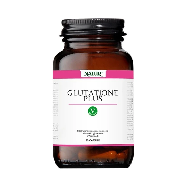 Integratore alimentare in capsule a base di L-glutatione e vitamina E. Il glutatione è un tripeptide naturale contenente zolfo, formato dagli aminoacidi L-glicina, acido glutammico e L-cisteina e la forma biologicamente più attiva è quella ridotta (GSH). Si trova in concentrazione molto elevata a livello oculare e precisamente nel cristallino. L-glutatione è un cofattore della glutatione perossidasi, uno dei principali enzimi ad azione antiossidante del nostro organismo. La vitamina E contribuisce alla protezione delle cellule dallo stress ossidativo. Le materie prime usate sono OGM free e non irradiate e il prodotto è adatto a persone che seguono una dieta vegana.