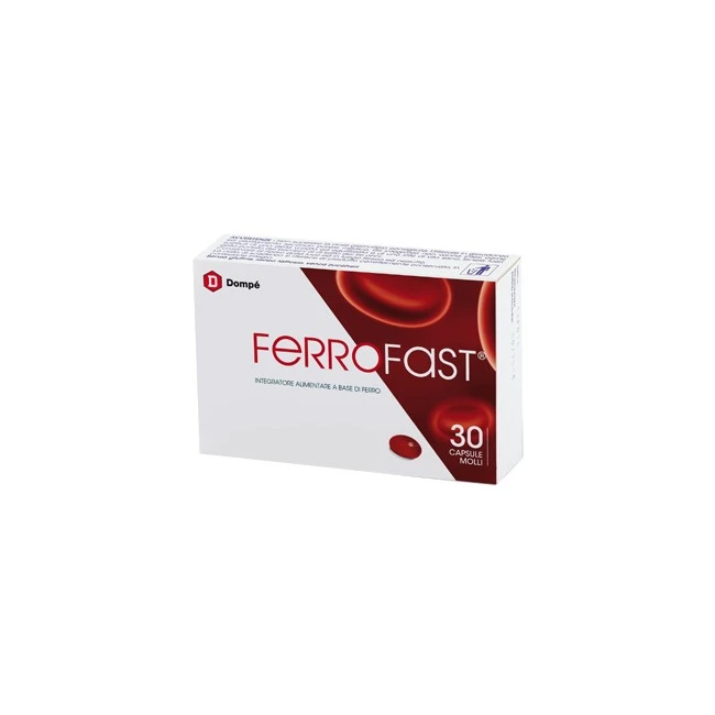 Integratore alimentare a base di ferro in liposomi formulato in capsule molli di facile deglutizione e rapido assorbimento, disponibile in diversi dosaggi utili in tutti i casi in cui è necessaria un’integrazione di ferro. Senza glutine, senza lattosio, senza zuccheri.Integratore alimentare a base di ferro in liposomi utile in presenza di carenze alimentari o di aumentati fabbisogni organici di tale minerale. La so sticata tecnologia di rivestimento e veicolazione del ferro pirofosfato in liposomi, utilizzata per Ferrofast® assicura una elevata biodisponibilità del minerale e un’ottima tollerabilità a livello gastrico. Ferrofast® ha un gradevole sapore, senza retrogusto metallico.