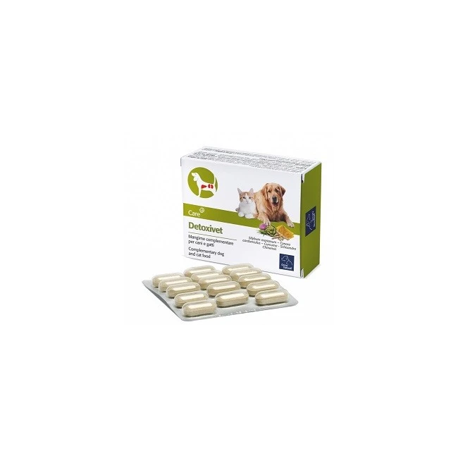 Alimento complementare naturale che, grazie alla sua composizione, può essere utile nel caso di problematiche relative a disturbi legati all'attività di fegato e reni.Detoxivet è a base di Ceratonia siliqua (carrube), Acacia e Cardo mariano, che hanno importanti proprietà depurative e regolatrici per l’intestino. Questi estratti svolgono un’attività protettiva, contribuendo a mantenere la normale attività renale e intestinale.