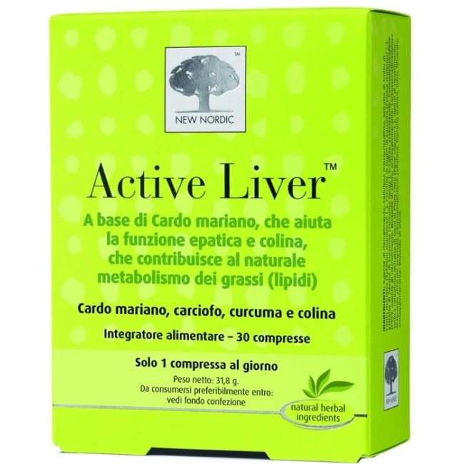 Active Liver a base di cardo mariano, che aiuta la funzione epatica. Le compresse Active Liver sono prodotte in Svezia e contengono estratti di cardo mariano, carciofo, curcuma, con l’aggiunta di colina. Il cardo mariano e il carciofo supportano la naturale funzione epatica. La colina contribuisce al normale metabolismo dei lipidi ed al mantenimento della normale funzione epatica.