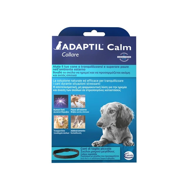 Collare per cani di taglia piccola, che fornisce un comfort costante al cane, aiutandolo a calmarsi ed adattarsi alle situazioni stressanti nell'ambiente esterno.